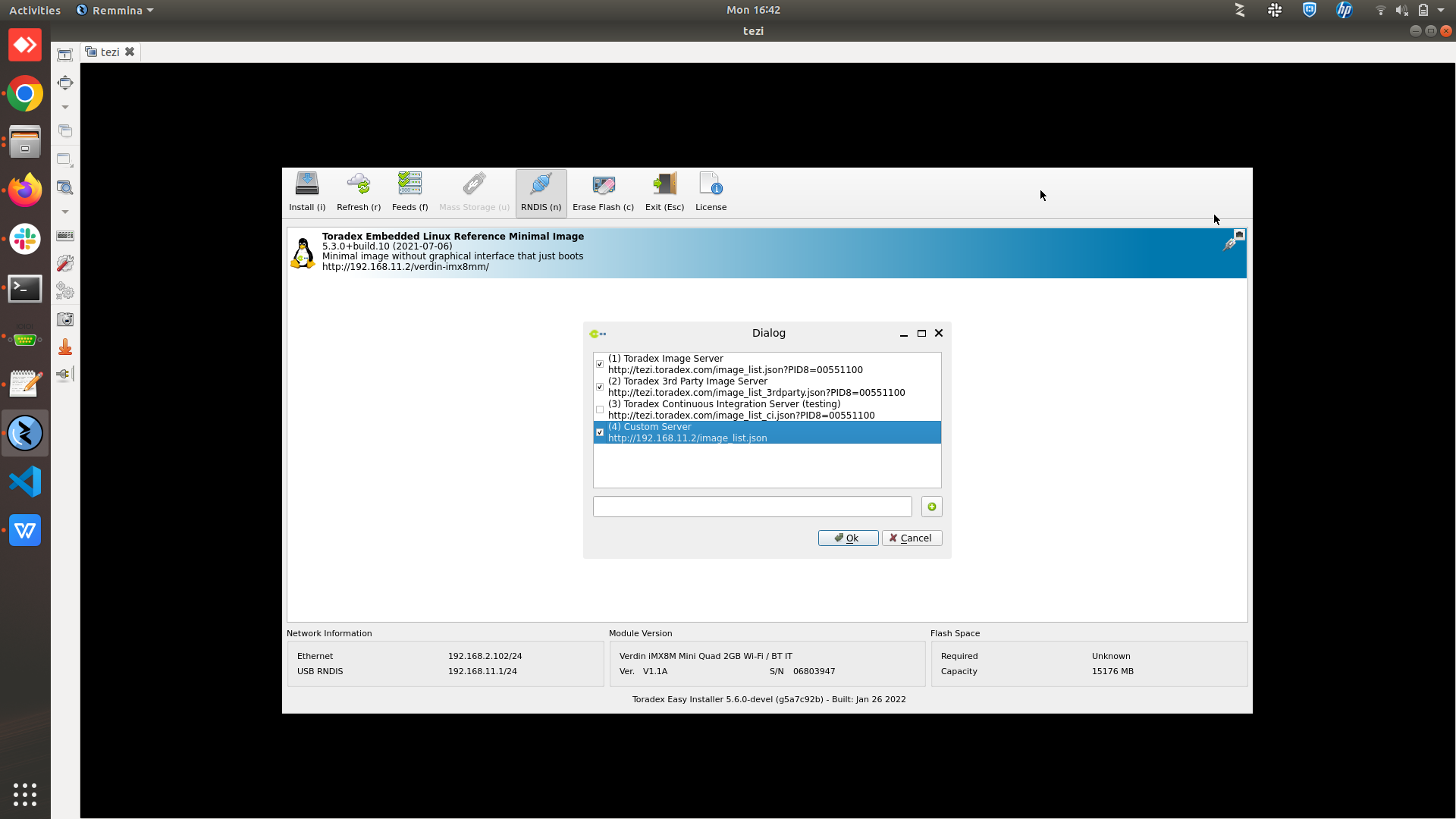 4.Load toradex easy installer image on target and once it loaded add custom feed under feeds section like mine is http://192.168.11.2/image_list.json